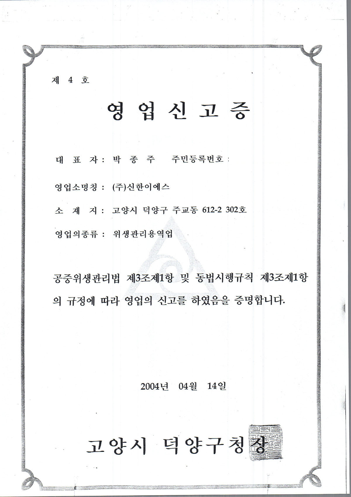 (ÁÖ)½ÅÇÑÀÌ¿¡½º-À§»ý°ü¸® ¿ë¿ª¾÷ ½Å°íÁõ